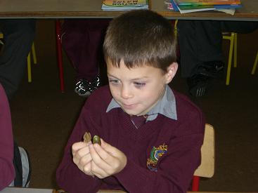 Seasonal Autumnal changes were explored as the boys examined fruits, leaves and seeds from the grounds of the school.
